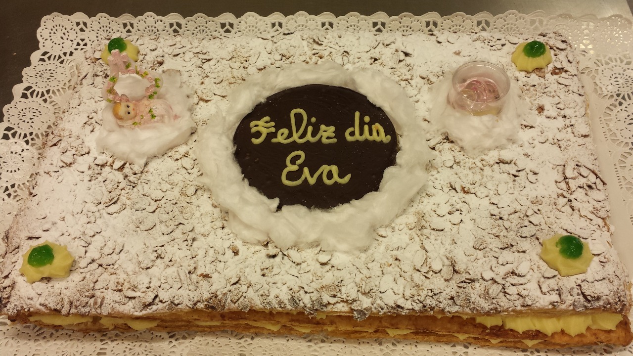 Dulce San Antón Mihojas nata cubiertos yema tostada