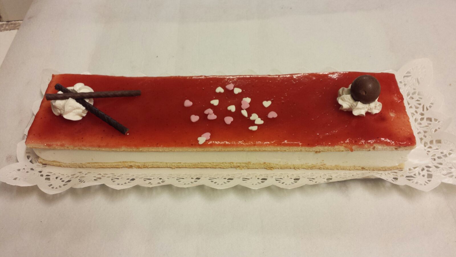 San Marcos Mousse de queso y fresa Tarta hojaldre nata frutas