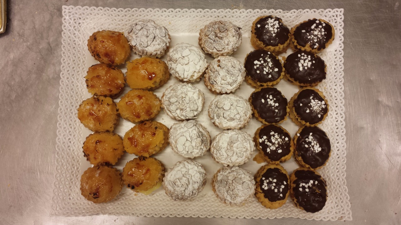 Pastas artesanas Opillas con bizcocho de almendra Pinos navideños de praliné